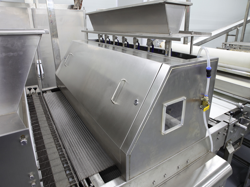 該設備應用于產品的表面進行蛋液,糖漿,牛奶等液體的噴,刷。使產品的表面富有色澤,口感更豐富
